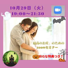 「最高のお産!」のためのzoomセミナー開催 10月29日(火)19:00〜21:30 詳細はこちらから